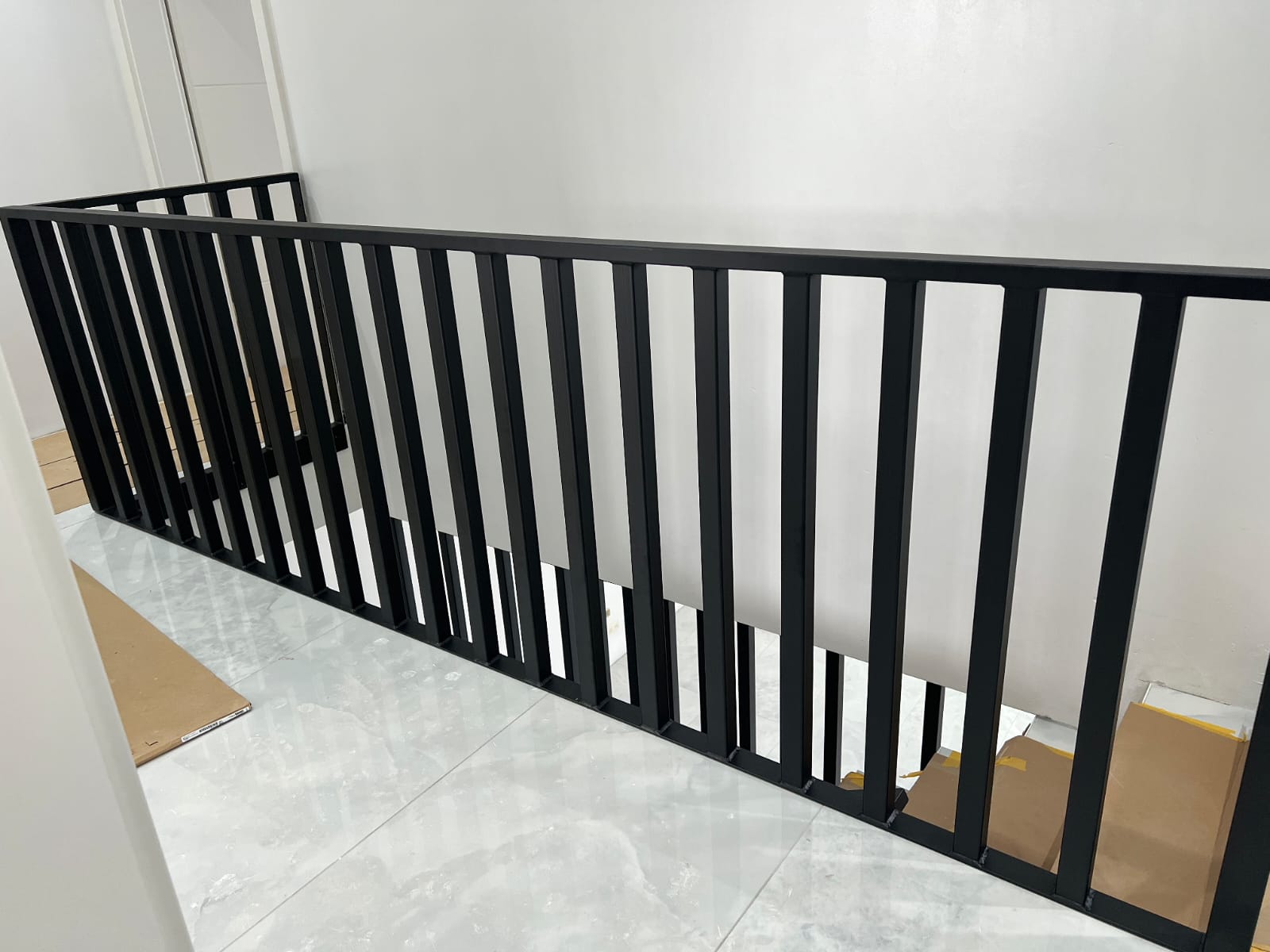 Stalen balustrade gepoedercoat in RAL 9005 in een nieuwbouwwoning maasmechelen